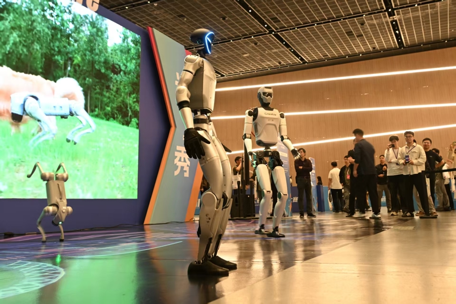记者看到,序厅特设了前沿产品展示区,集中呈现业界最前沿人形机器人技能,比如,傅利叶N1开源人形机器人展示行走、上肢表演和大模型语言沟通,智元机器人的远征A2展示中英文实时交互,清宝机器人的导览讲解机器人和仿生机器人头部展示人机对话交互……